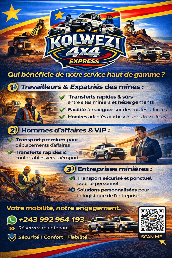 Kolwezi Land Cruisers propose des services de location de véhicules 4×4 fiables et de haute qualité, adaptés aux besoins des entreprises, des organisations et des particuliers opérant à Kolwezi et dans les régions environnantes.